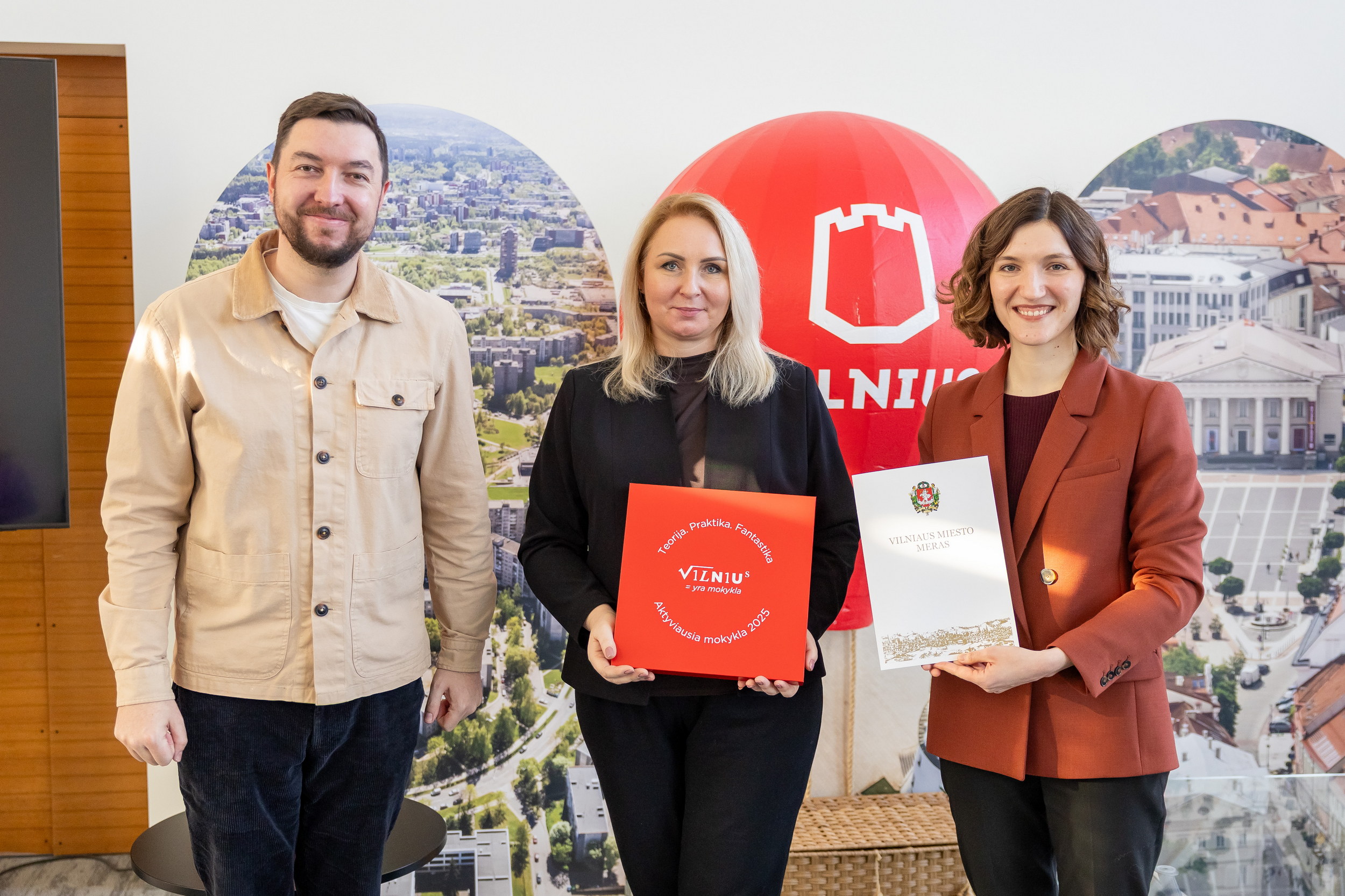 Sausio 18 dieną, minint projekto „Vilnius yra mokykla“ trejų metų veiklos sukaktį, apdovanotos aktyviausiai projekte dalyvaujančios Vilniaus miesto savivaldybės mokyklos ir projekto partneriai. Tarp dešimties aktyviausiųjų – Mykolo Biržiškos gimnazija. Kartu su Vilniaus mero padėka į gimnaziją parvežta ir speciali dovana – šiems apdovanojimams sukurtas Vilniaus šachmatų rinkinys. Džiugu, kad mūsų gimnazija sėkmingai dalyvauja netradicinio ugdymo veiklose, kūrybiškai naudojasi savo miesto galimybėmis ir yra aktyvūs savo miesto gyvenimo dalyviai.
